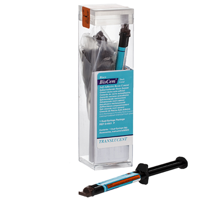 BisCem es un cemento de resina, fórmula pasta/pasta, liberador de flúor que no requiere grabación, acondicionamiento ni la adhesión de las superficies preparadas. Es fácil de usar, solo requiere un breve tiempo de asentamiento y ofrece una buena adherencia a la mayoría de los materiales dentales. El cemento se encuentra disponible en color translúcido y opaco. Es radiopaco, lo que permite su fácil identificación en las radiografías.