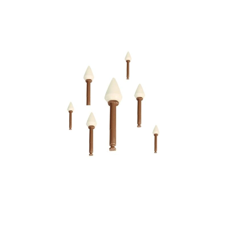 - Para terminación superficial de restauraciones de resinas compuestas, compómeros y bordes de restauraciones fijadas con cementos resinosos y porcelana.