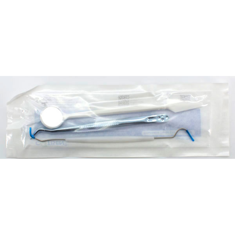 Kit diagnostico dental esteril 3 Piezas ( 01 Pinza Examen + 01 Sonda Curva dobles + 01 Mango con espejo N° 5)
